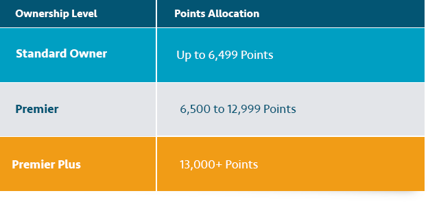 Your level of ownership within the Destinations program will influence your reservation windows. There are three levels of ownership within the Destinations program: