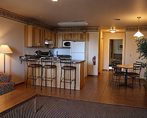 Accommodations at the resort span four individual buildings. Condos are arranged into one-, two-, and three-bedroom spaces, while the four-bedroom Alpine Chalet-Cabin offers a more private escape ideal for larger groups. Units are modeled after Midwest mountain lodges, offering comfortable homelike furnishings to ensure everyone's total comfort. You'll find that your Barefoot timeshare includes amazing in-unit features like full kitchens, private balconies, multiple bathrooms, fireplaces, and even your own laundry machines for the utmost convenience.