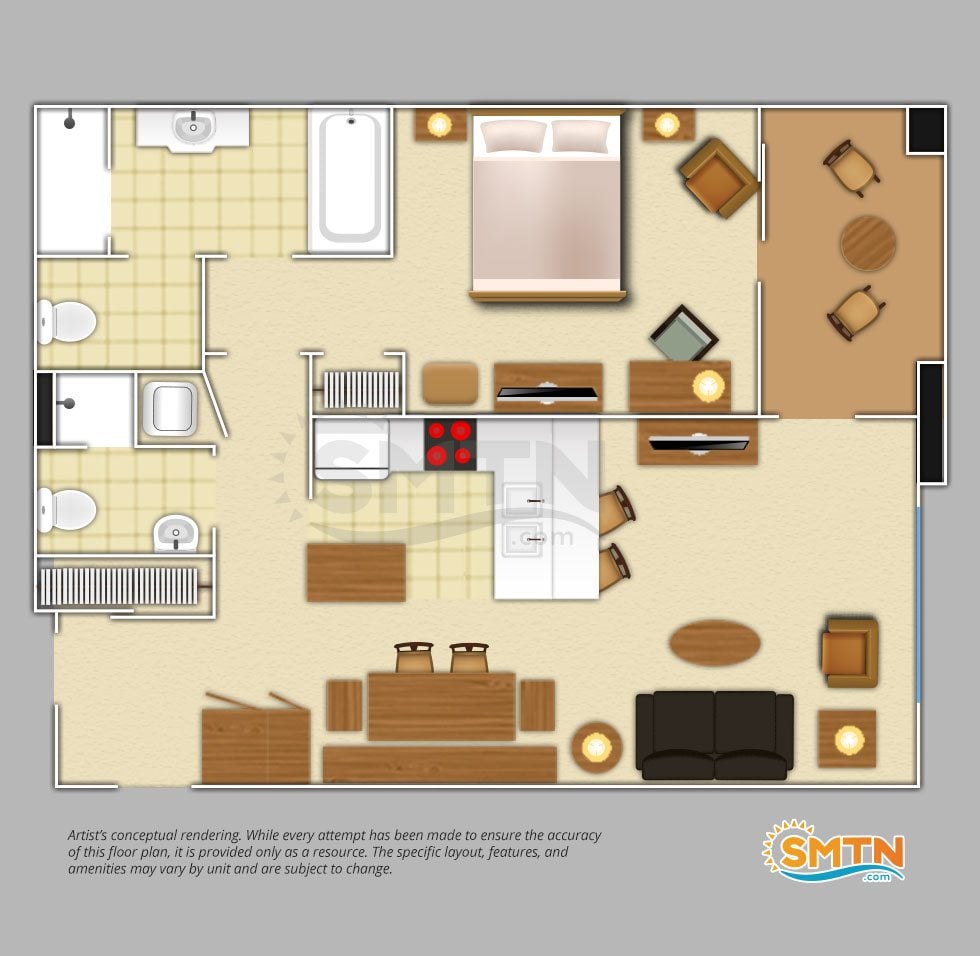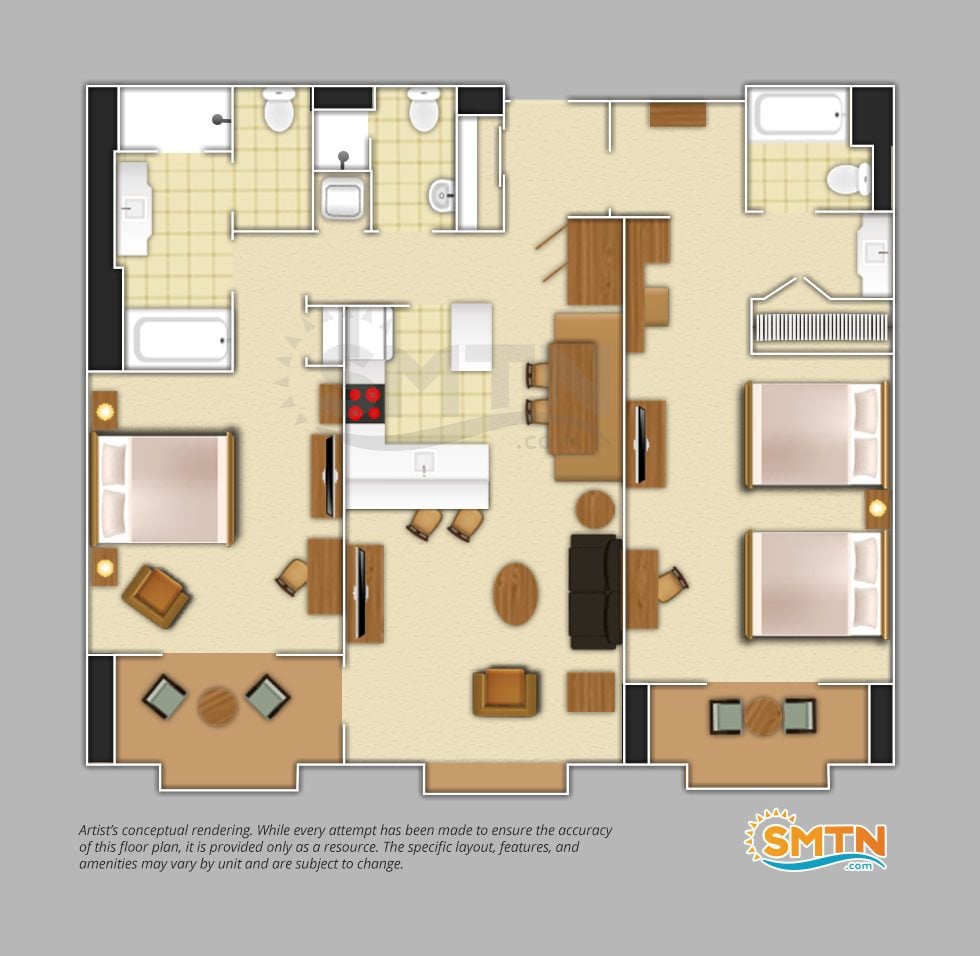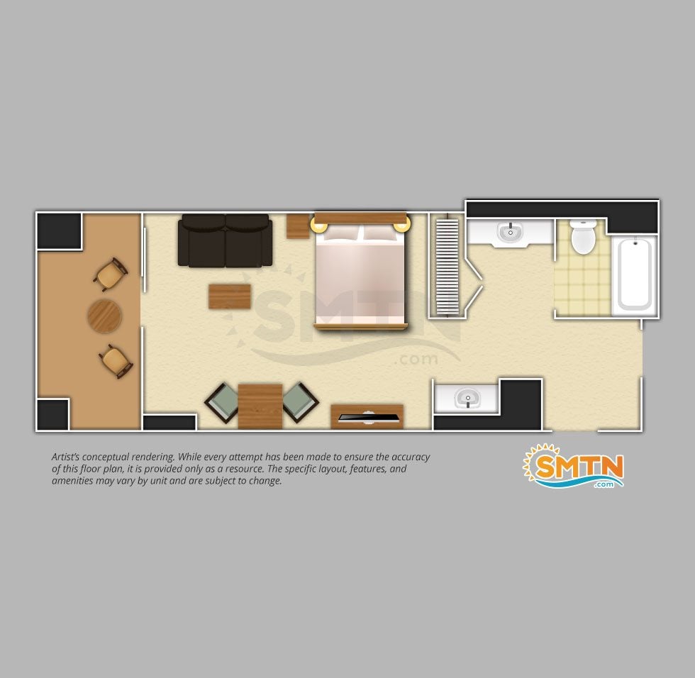 Studio, one-, two-, and three-bedroom villas are available with a wide variety of views, including courtyard, Disneyland Drive, theme park, pool, Downtown Disney District, or the woods. Each is well-equipped and features warm, modern decor to make you feel comfortable and right at home. Most offer private balconies or patios to further enjoy your view of all the hustle and bustle that surrounds.