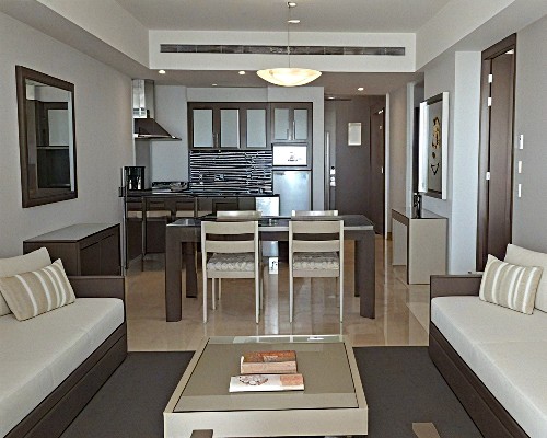 Accommodations at the Grand Mayan spell luxury from start to finish. Elegant master room studios are accented by a Pacific Mexican theme, ideal for couples seeking a getaway from it all. Larger rooms, such as the two bedroom suite, can sleep up to six comfortably and are ideal for families looking for their yearly beach vacation solution. Equipped with modern furnishings, open and accommodating living areas, and even kitchenettes for the utmost convenience, you'll find you won't have to lift a finger to enjoy your vacations to Mexico.