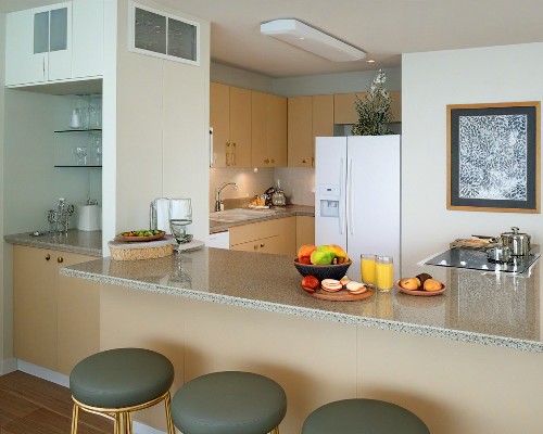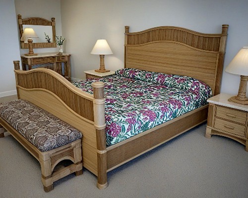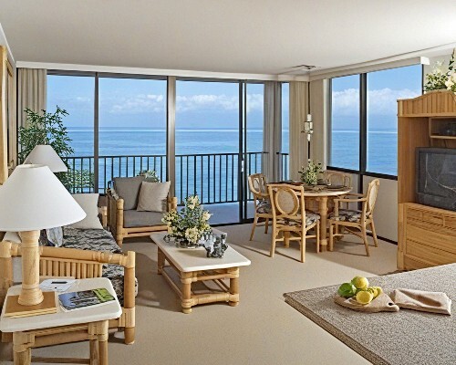 Your lovely studio or one-bedroom suite is decorated with light, airy, natural finishes in blonde woods, bamboo, shell stone and granite. The furniture is accented with comfortable Hawaiian fabrics. The kitchen is highly functional and features a glass cook top, oven, refrigerator, microwave, cabinet storage and cookware to provide everything you need for your enjoyment.