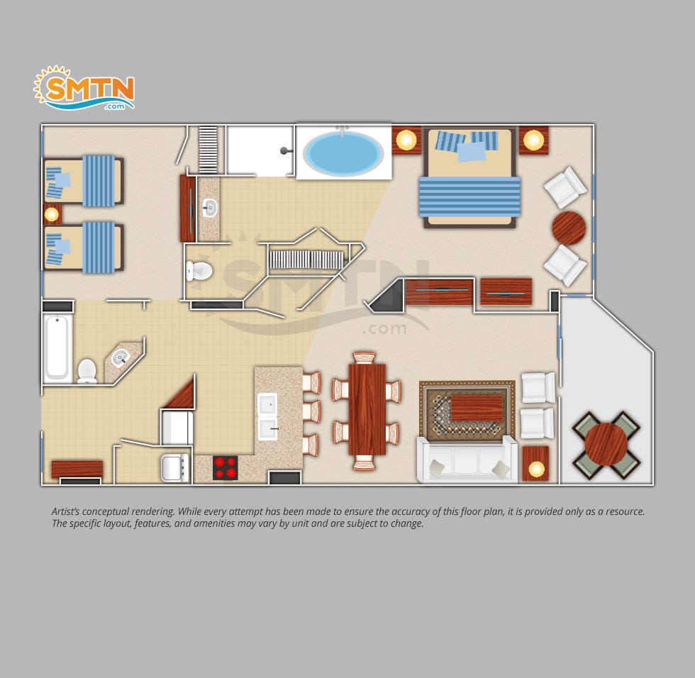 Five floors house 111 luxurious units with gorgeous views of the cove and the resort grounds. The upscale two bedroom villa-style units contain enough space to sleep six guests comfortably, and include desirable amenities like washers and dryers, outdoor balconies, full kitchens, and more. Complemented by free WiFi and modern furnishings, it's no wonder why the villas at Marriott's Harbour Point are so popular among families and small groups alike.
