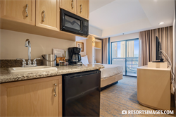 Whether you’re looking for a place for a romantic getaway, for a family trip, or need a place for a business trip, The Suites at Polo Towers lend itself to every type of occasion. Travelers can choose between a studio, one-, or two-bedroom suite. All come well-equipped with a full or partial kitchen, spacious bathroom, living and dining areas, and private balconies or patios that look over the pool or the Las Vegas skyline. Find similar accommodations at the Polo Towers Villas right next door.