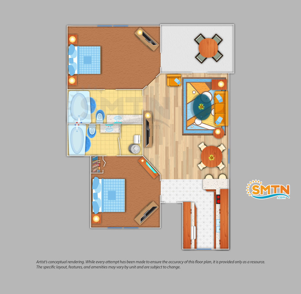 Ownership suites at the Hill Country Resort Texas are available in the form of two and three bedroom spaces ideal for groups of up to eight. You'll find a wide range of impressive in-unit features at the Hill Country Resort, including a fully-equipped kitchen perfect for preparing your own meals, a private balcony to catch the beautiful Texas sunrise or sunset, and comfortable furnishings with up-to-date electronics throughout. With all the conveniences of a modern home, you'll have everything you need in your suite to enjoy your vacation.
