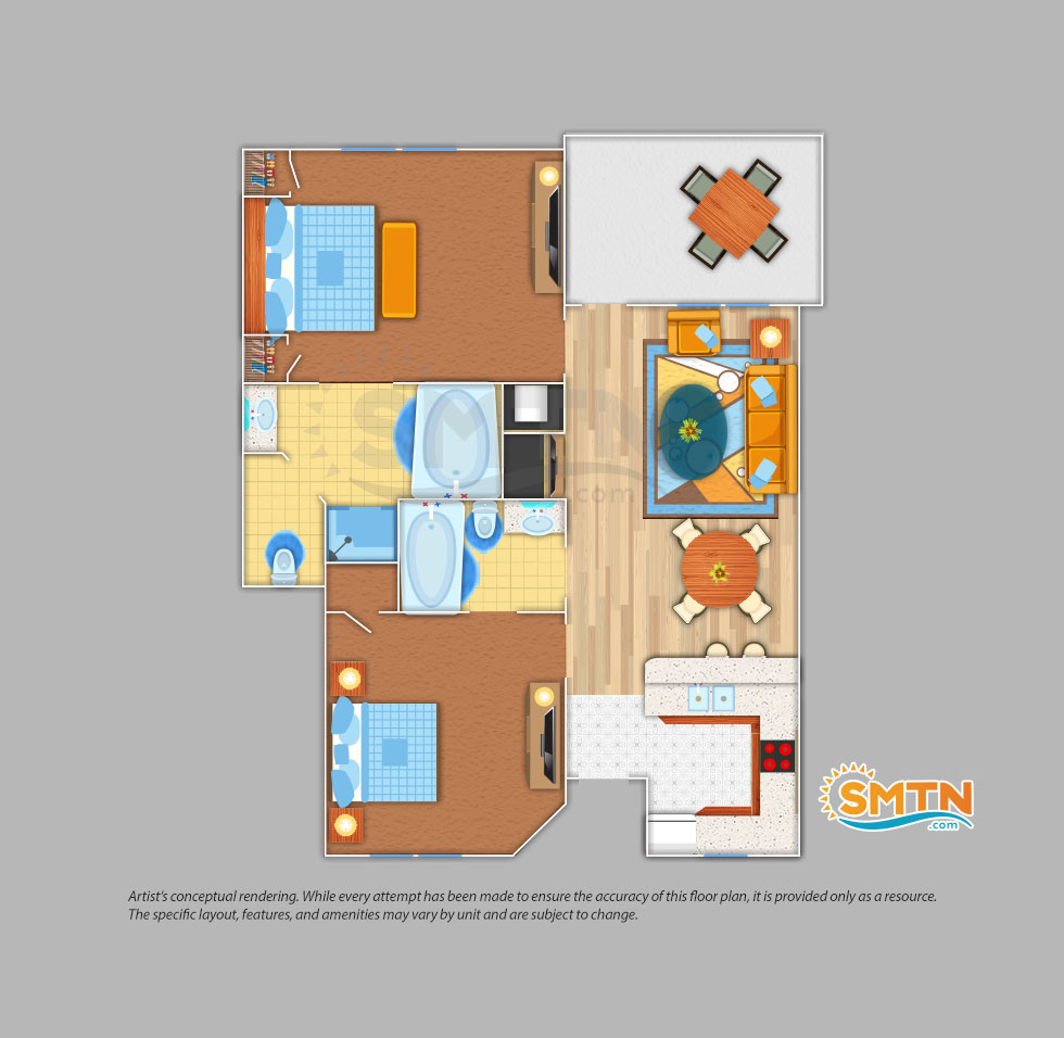 The suites at the Silverleaf Villages include two bedroom accommodations perfect for families and groups of up to six. With plenty of room to stretch out, the timeshare suites at the resort are ideal for those looking to take advantage of the area's attractions while enjoying homelike accommodations. You'll find your timeshare suite comes complete with desirable in-unit amenities like full kitchens, multiple bathrooms, private balconies, and much more.