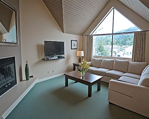 Lodgings at the Whiski Jack Powders Edge come as two-bedroom suites with a den, which can sleep up to 6 people. These two story units offer optimal space, with modern furnishings and a full kitchen with state-of-the-art appliances to optimize your relaxation. Each unit features home comforts to make your stay as pleasant as possible such as the cable tv, air conditioning, fireplace, complimentary Wi-Fi, and your own private hot tub. Wake up every morning to an unforgettable view of the majestic British Columbia Mountains and take in the clean Whistler air.