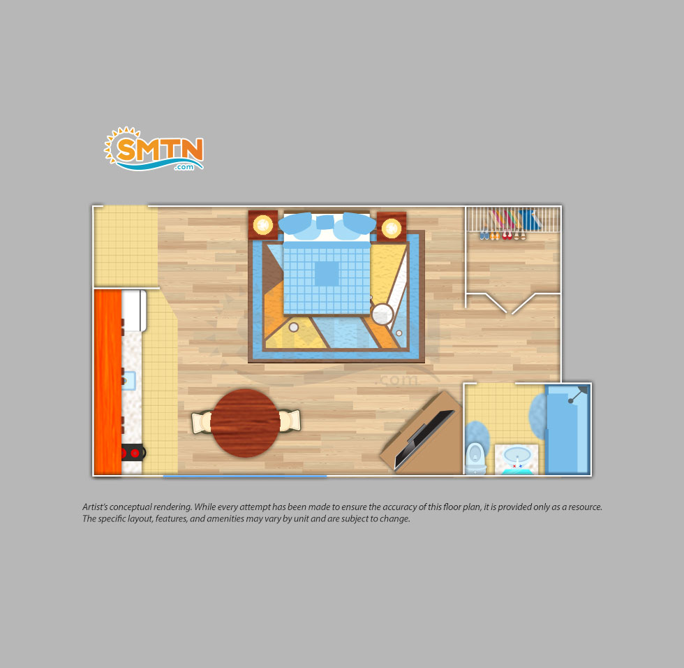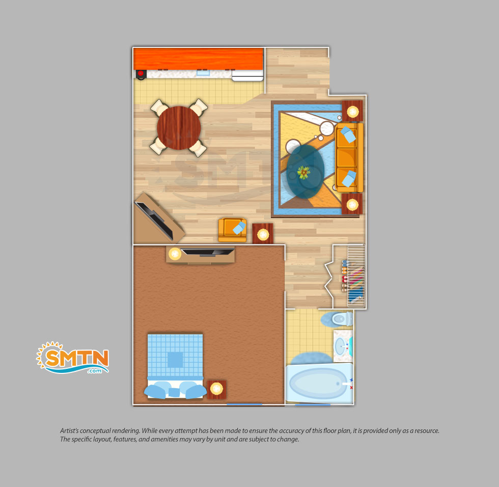 With two cozy, yet spacious suite options, you're sure to have a comfortable place to relax during your vacation. While you will be spending most of your vacation outside of your accommodations, both studios and one-bedroom units can accommodate four guests and feature a mini kitchen, Internet access, and a full bathroom. These suites aren't cramped like area hotels, and both the rooms and resort offer conveniences and amenities you won't find just anywhere.
