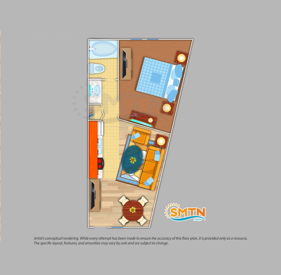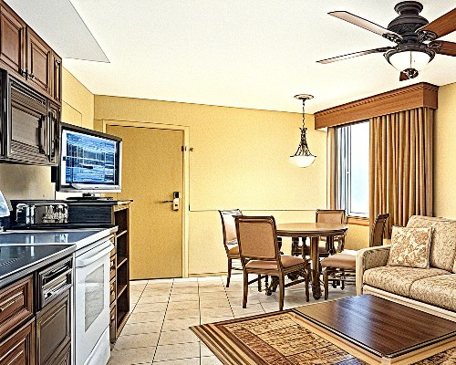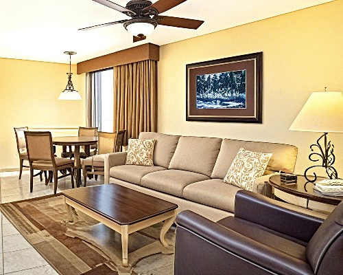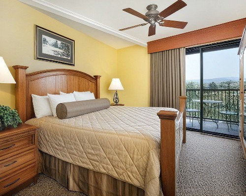 Owning at this exciting Wyndham timeshare resort gives you plenty of opportunities to explore the great outdoors and enjoy cozy relaxation time with those you love. Comfortable one-bedroom suites are available and come well-equipped with full kitchens, plush furnishings, a whirlpool tub, and a private balcony for enjoying the surrounding mountain views. These accommodations are perfect or a small family or a laid-back couples retreat.