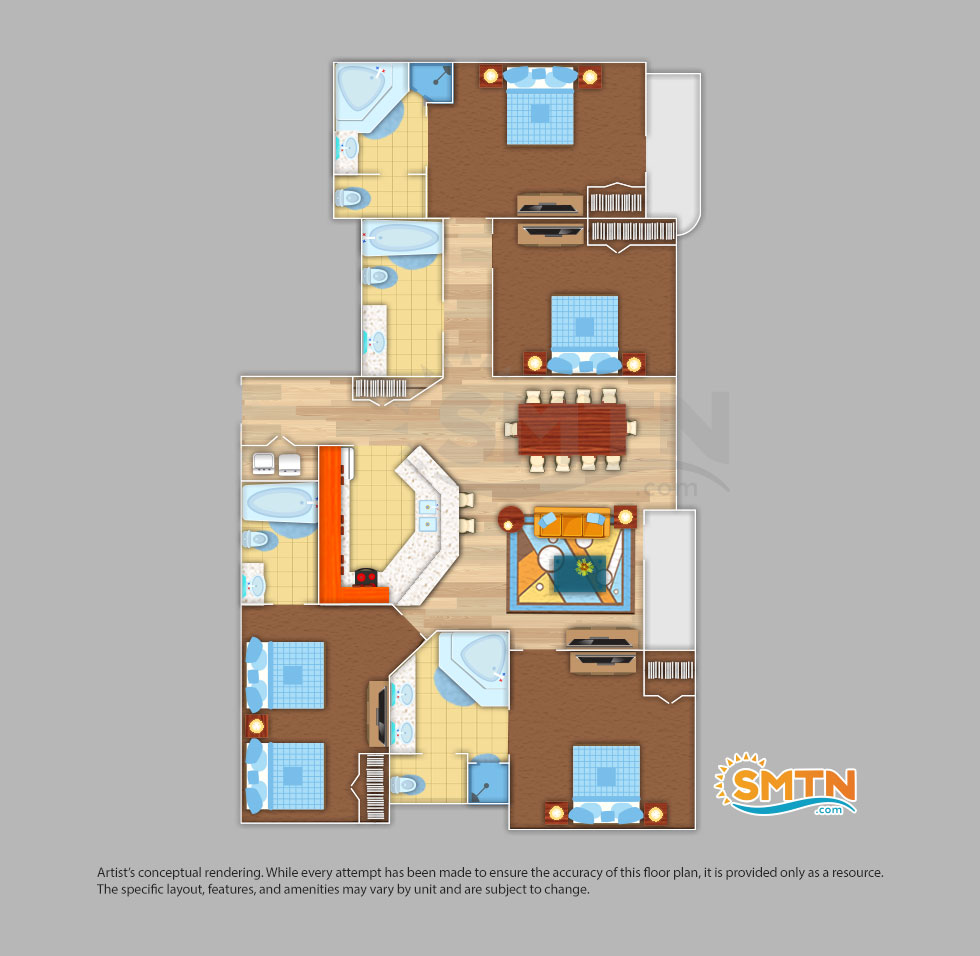 One-bedroom suites all the way up to sprawling four-bedroom presidential units are available for you to stay in at this fabulous property. All accommodations are well-appointed with rich decor and incredible amenities to make your stay comfortable and convenient. Each unit comes equipped with private bedrooms, a fully applianced kitchen, washer and dryer, and whirlpool tub.