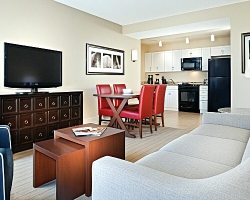 Choose between a one-, two-, and three-bedroom deluxe suite. Each offers a stylish, modern feel with comfortable furnishings and updated appliances. Perfect for as many as eight guests in the three-bedroom, you can bring the whole family along without booking multiple rooms. En-suite amenities include fully equipped kitchens, washers and dryers, whirlpool tubs, and private bedrooms.