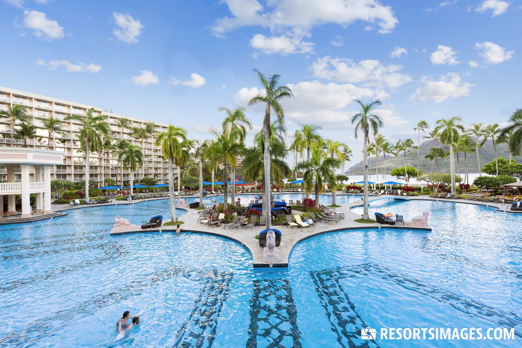 Spin daydreams at the edge of a 26,000 square-foot pool rimmed with colonnades and waterfalls. Ponder tomorrow's pursuits in relaxing outdoor whirlpools. Sample the delectable cuisine of four superb restaurants and beachfront lounges. Delight in the historical splendor of a Hawaiian traditional torch lighting or relax at a Polynesian revue.