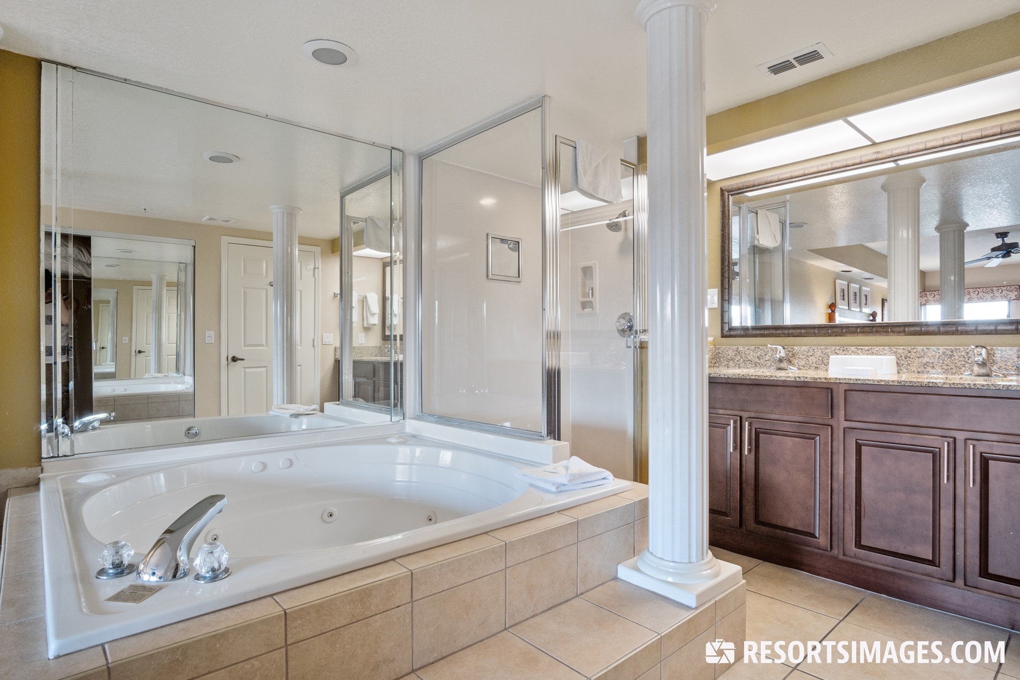 Set on one of Florida's most scenic lakes, *Westgate Lakes* features comfortable resort villas with such amenities as a full kitchen, screened porch or patio, separate living and dining areas, leather furniture, and master bedroom with a color television and whirlpool bath. Just minutes from Walt Disney World, Universal Orlando, and SeaWorld, Westgate Lakes guests enjoy tennis courts, swimming pools, hot tubs, basketball, volleyball, paddle-boats, planned adult and children's activities, and a full-service spa. The on-site Smokehouse Grill is one of Orlando's best barbecue restaurants.