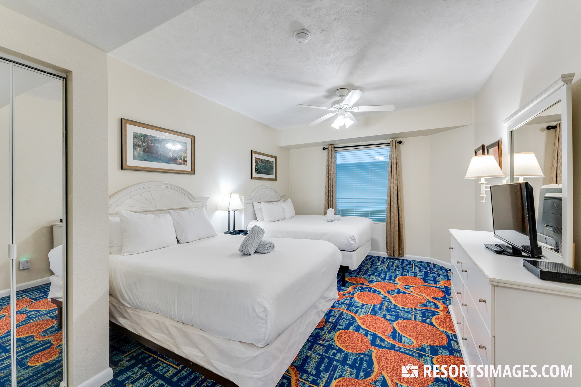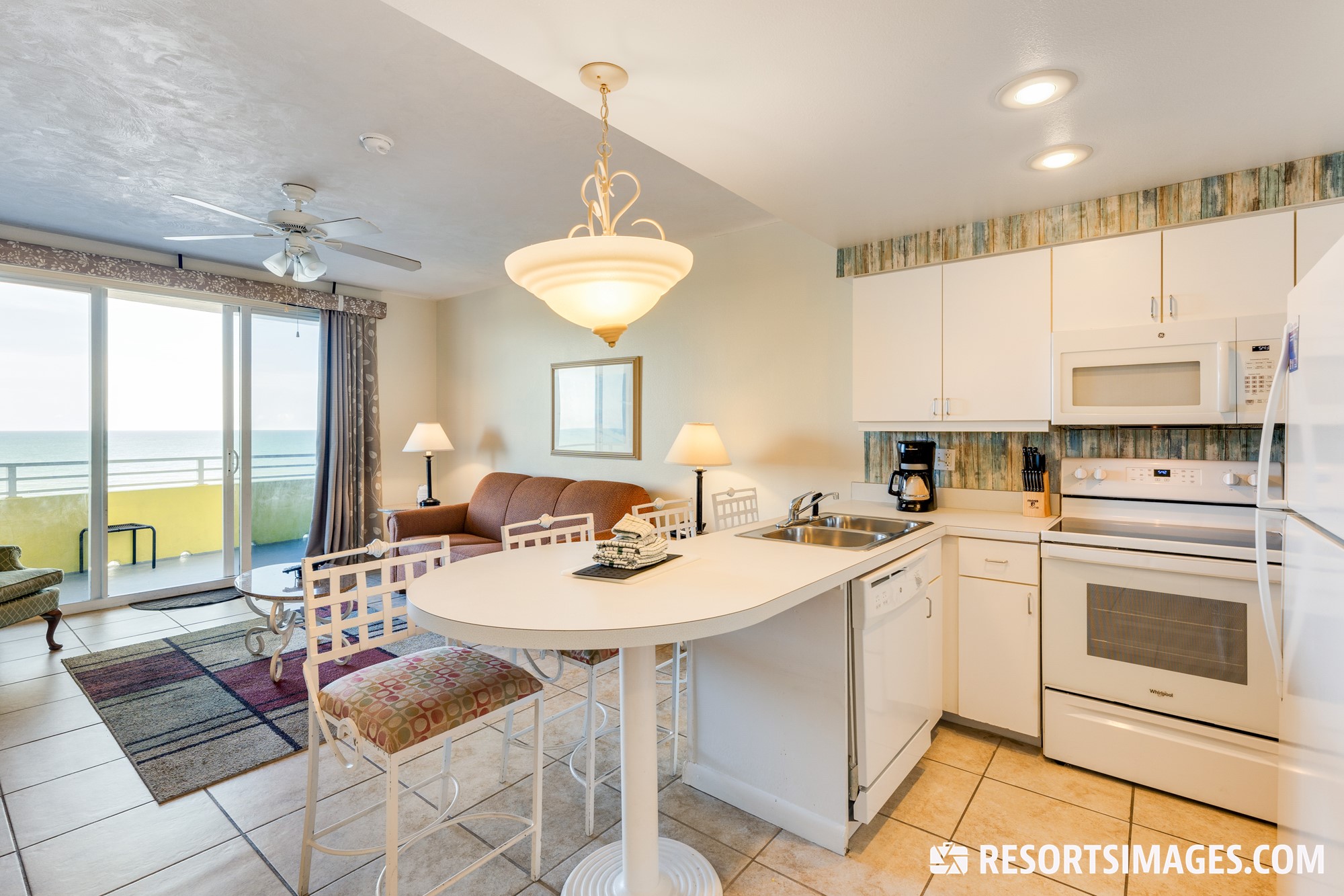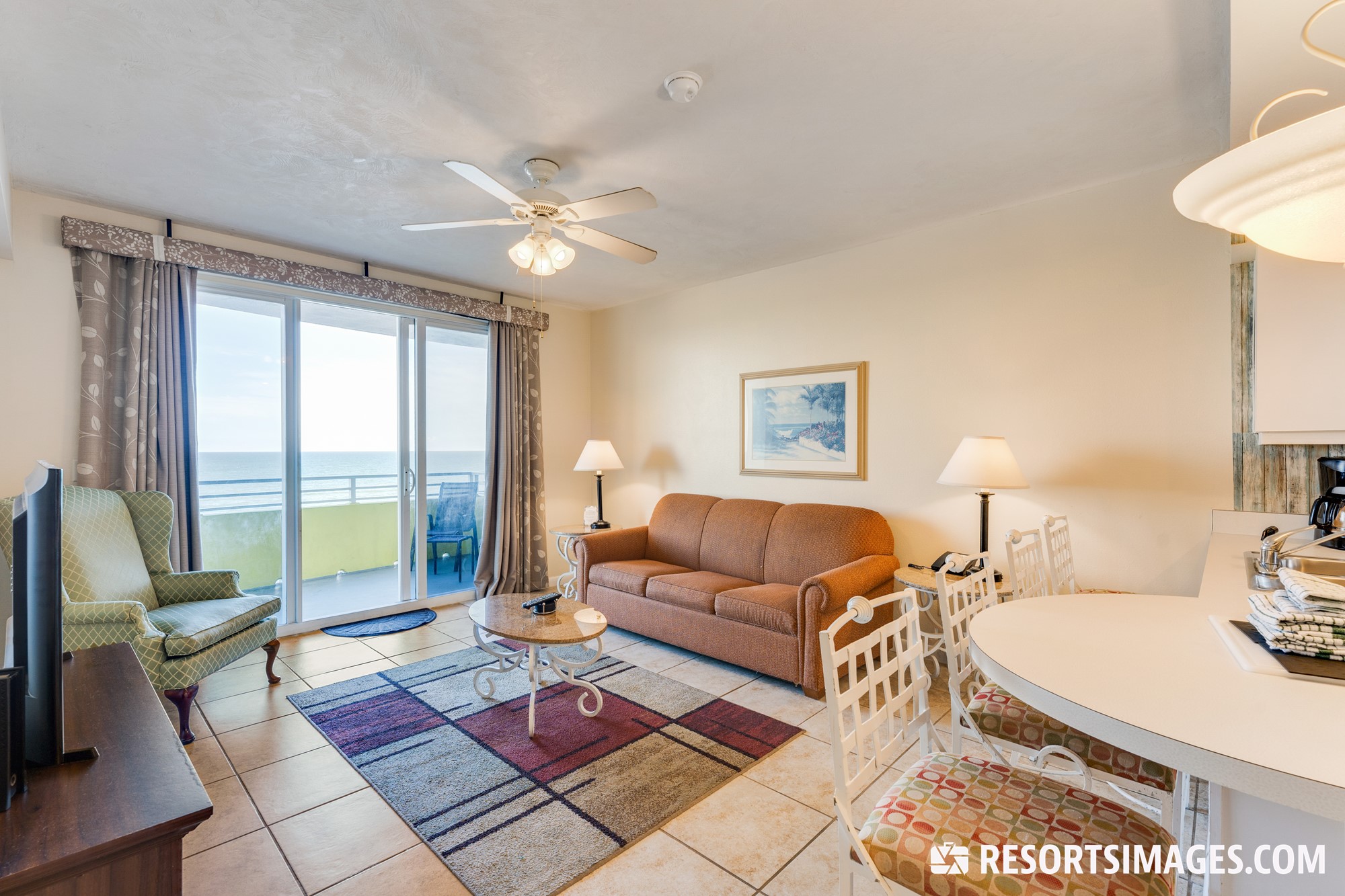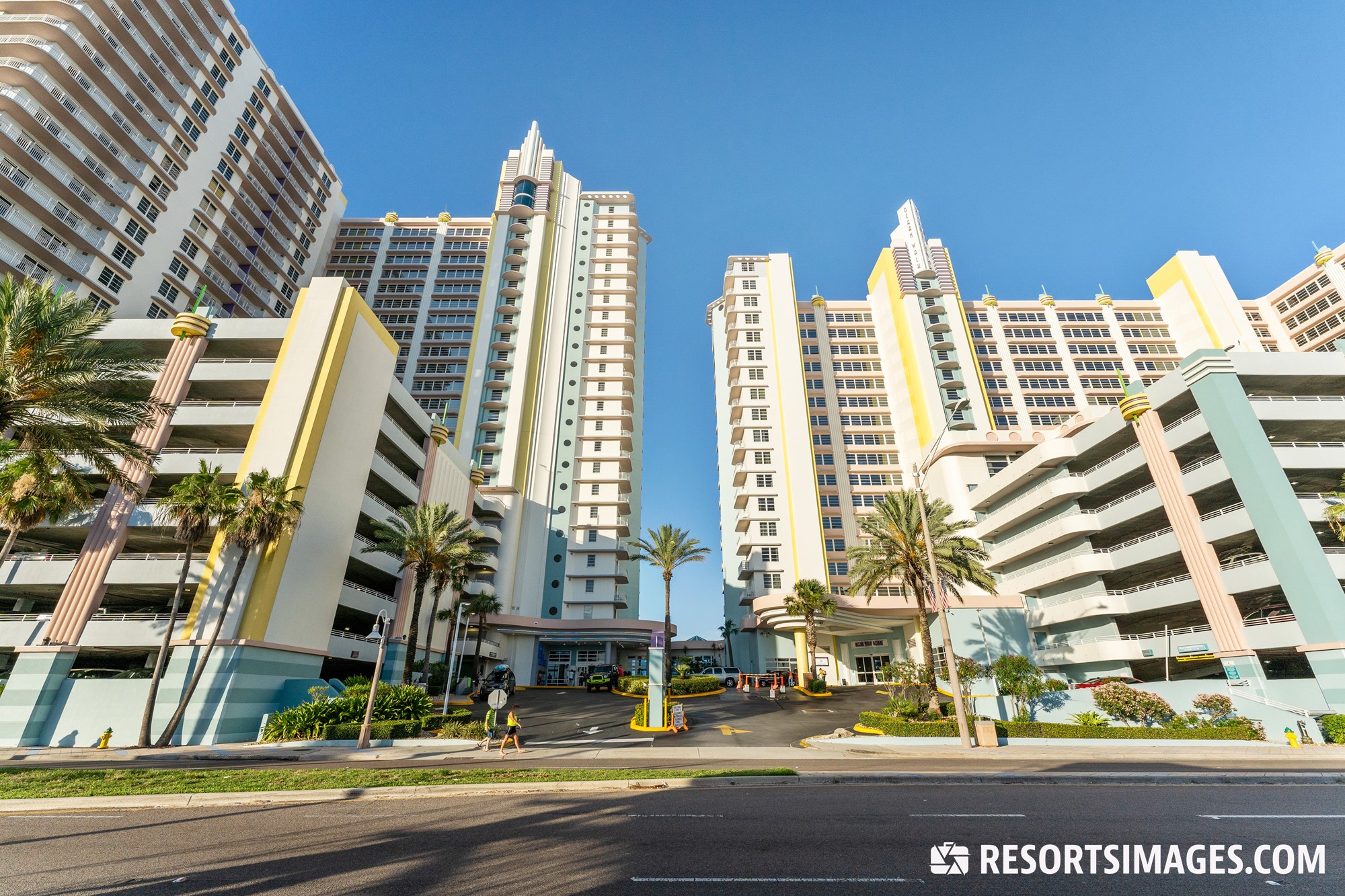 The *Wyndham Ocean Walk* resort is located directly on the beach with a full service food court, lobby bar, exercise room, indoor pool, arcade, gift shop, golf simulator, and activities center. You will also find an outdoor pool, Jacuzzi, lazy river, and water slide. The resort offers a full service banquet facility and in-house chef, and room service. Adjacent to the property is Daytona's newest Ocean Walk Shoppes and Theatres, Bandshell Amphitheater, and Boardwalk.